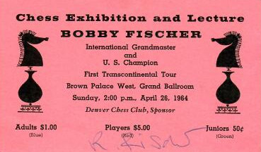 Bobby Fischer – April 26, 1964 (autographed entry card)