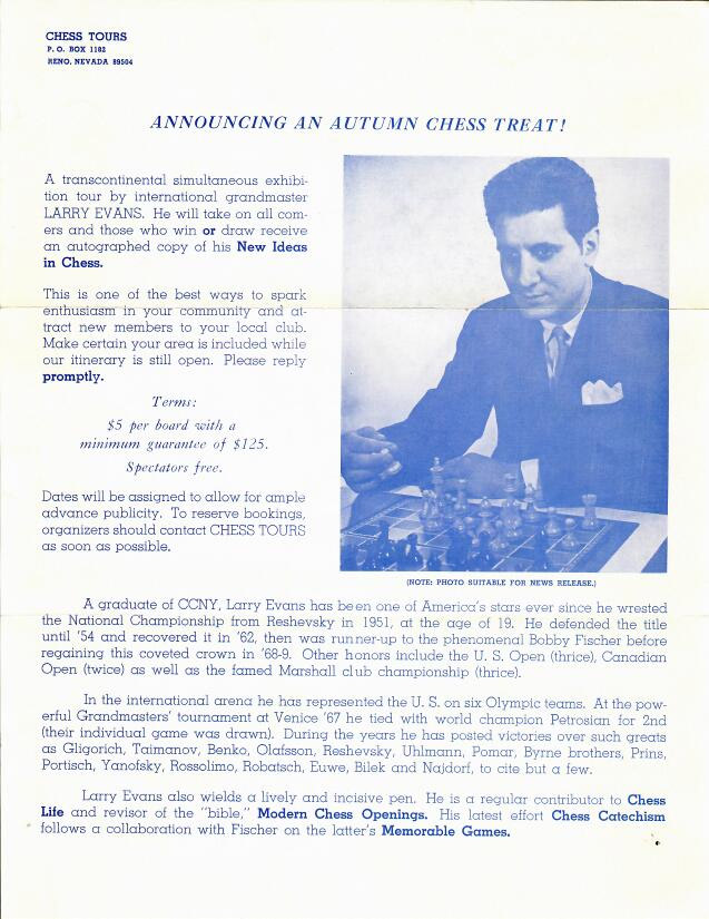 Larry Evans – January 21, 1963 and October 1969 (right after the Denver Simul)