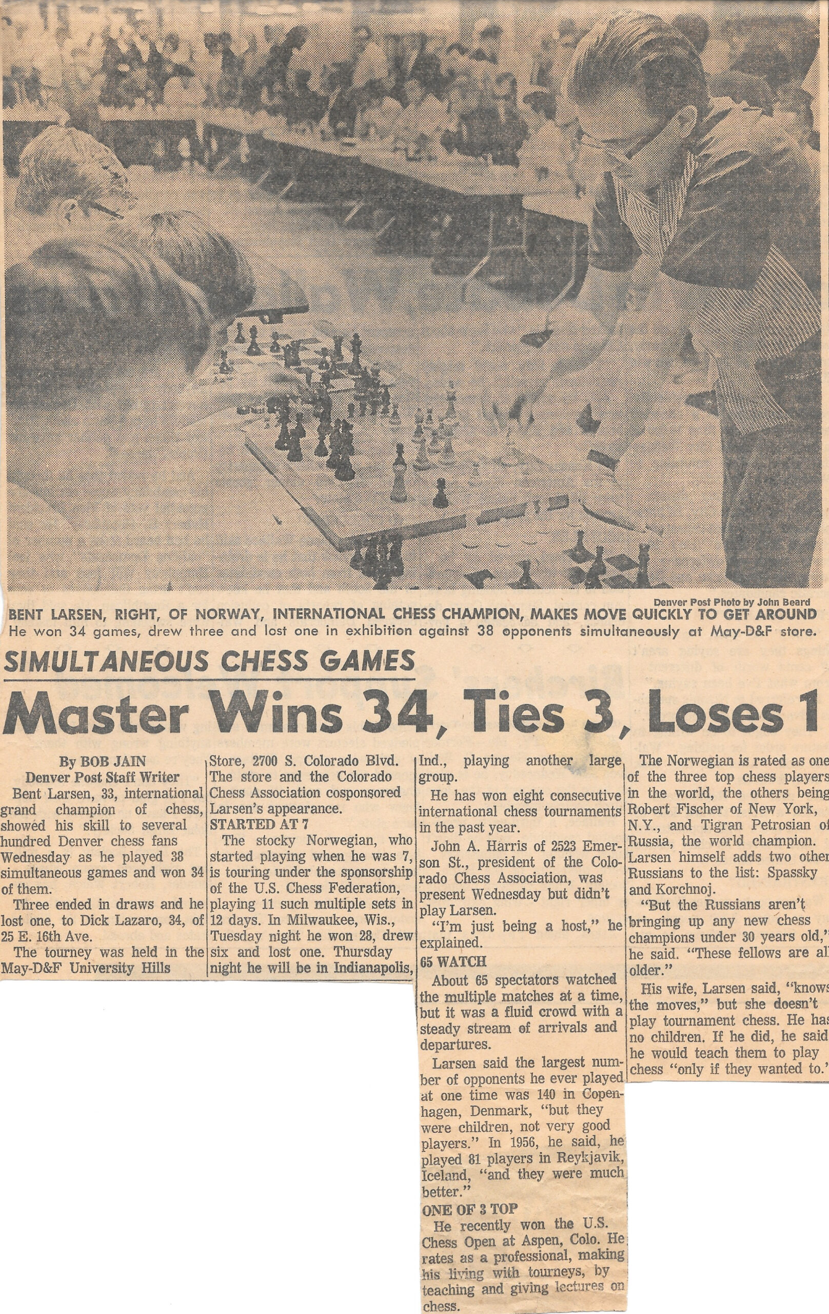 Bent Larsen – September 18, 1968 and July 18, 1974 (announcement) (newspaper)