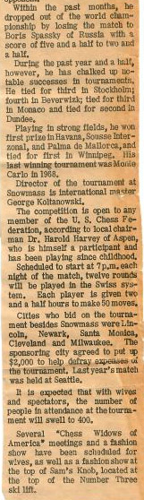 1971 Fischer-Larsen World Championship quarterfinal match (entry ticket) held in Denver. Fischer won 6-0 and went on to defeat Boris Spassky and become World Champion in 1972. (FIDE announcement) (Bobby Fischer’s Visits to Colorado)